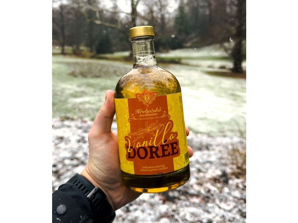 Hřebečská mead began to be produced around 1995, but it was not officially commercialized until 2002. Mrs. Bakrlíková places great emphasis on the meads offered being of a natural nature, and she also devotes great care to the selection of mixtures of spices and herbs that have a beneficial effect on the body. These are mostly collected directly in the surrounding areas of Hřebečské hřbet.